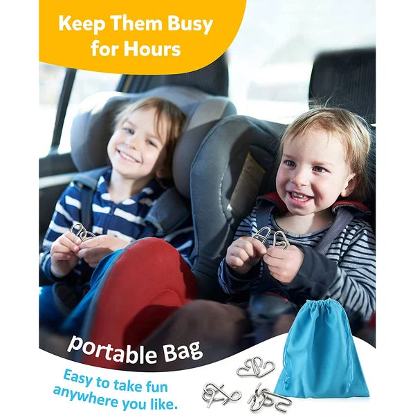 [Puzzle in metallo di alta qualità] Per i bambini, i nostri puzzle in filo metallico prestano maggiore attenzione alla qualità, quindi il nostro giocattolo IQ utilizza un processo di formatura integrale per garantire che i rompicapo siano lisci e non facciano male alle mani. Aggiorniamo i nostri materiali, utilizzando tre strati di placcatura al nichel per evitare la ruggine o la perdita di forma.